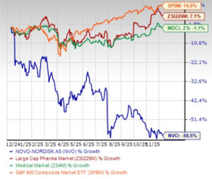 Novo Nordisk NVO is a dominant player in the cardiometabolic space, marketing its blockbuster semaglutide-based (GLP-1) drugs — Ozempic (for diabetes) and Wegovy (for obesity). Despite being NVO’s key growth drivers, sales momentum for both drugs