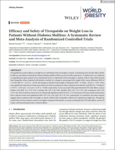 Kommu S, Sharma PP, Gabor RM. Efficacy and Safety of Tirzepatide on Weight Loss in Patients Without Diabetes Mellitus: A Systematic Review and Meta-Analysis of