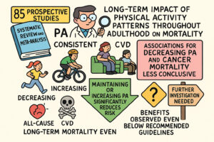 A systematic review and meta-analysis of 85 prospective studies, examining the long-term impact of physical activity (PA) patterns throughout adulthood on mortality. The authors aimed to understand how consistent, increasing,