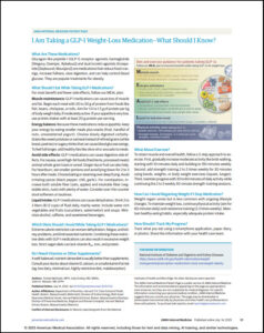 This patient-focused guide from JAMA Internal Medicine provides essential information for individuals utilizing GLP-1 medications for weight loss. It outlines the medications’ functions and offers practical dietary advice through a “MEAL” plan, emphasizing muscle