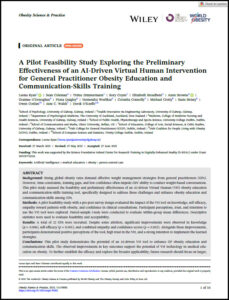 This document presents a pilot feasibility study published in “Obesity Science & Practice” that investigates the effectiveness of an AI-driven Virtual Human (VH) intervention designed to enhance General Practitioner (GP)