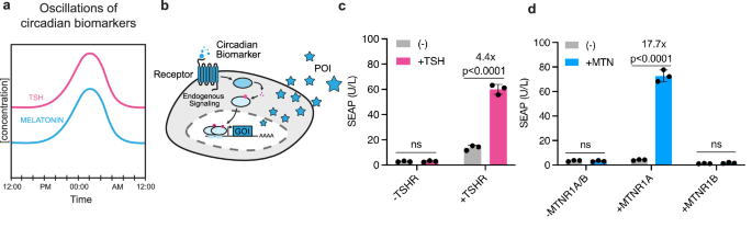 Nature Communications, Published online: 06 November 2025; doi:10.1038/s41467-025-64761-9 Circadian clocks integrate external environmental and internal physiological cues to generate oscillations of secreted endocrine signals. Here the authors build a melatonin-based circadian biomarker-driven gene switch in mammalian cells for type-2 diabetes treatment by oscillatory GLP-1 release.