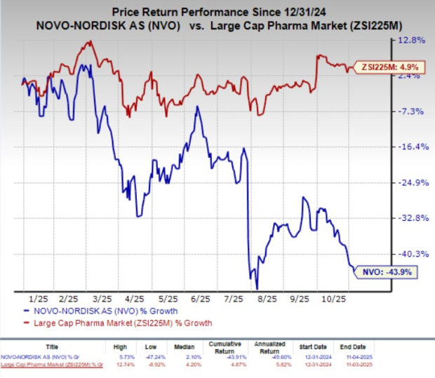 Novo Nordisk A/S NVO reported third-quarter 2025 earnings of 70 cents per American Depositary Receipt (ADR), which missed the Zacks Consensus Estimate of 77 cents. The company had reported earnings of 90 cents per ADR in the year-ago quarter. Revenues of $11.74 billion increased 5% year over year in the Danish kroner (DKK) and 11% at […]
