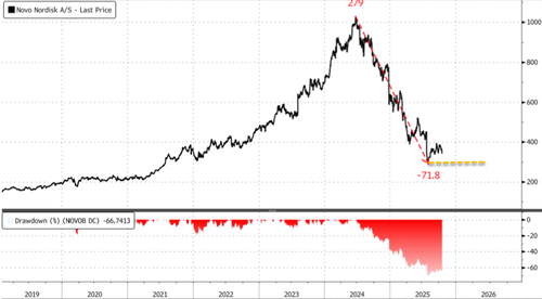 Novo Shares Drop After Trump Promises “Much Lower” Ozempic Prices Novo Nordisk A/S shares in Copenhagen appear to be experiencing yet another dead cat bounce following last month’s surge. That’s because President Trump told reporters late Thursday that GLP-1 drugs like Novo’s Ozempic, which currently costs about $1,000 per month, could soon cost “$150 out of […]