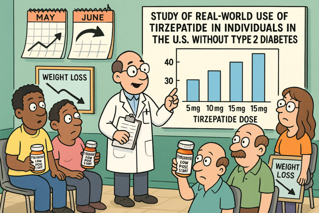 This source describes a study on the real-world use of tirzepatide, a medication, in a large group of individuals in the US who do not have type 2 diabetes. The research, which used data from an electronic health record database, aimed to understand how this medication was being used in practice during a period when it was primarily approved for diabetes. Key findings include that a significant portion of these individuals were eligible for anti-obesity medication based on their BMI and related health conditions, and that while many initiated treatment at lower doses, dose escalation in the real world appeared slower than in clinical trials. The study also provides insights into patient characteristics, treatment patterns, adherence, and persistence with tirzepatide in this real-world setting.
