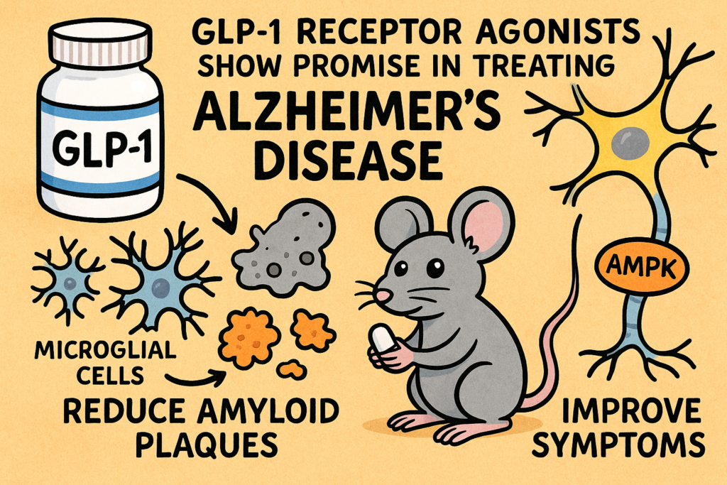 This scientific overview examines recent research suggesting that GLP-1 receptor agonists, a class of medications already used for diabetes and obesity, show promise in treating Alzheimer’s disease. The article highlights a study indicating these agonists can reduce amyloid plaques and improve symptoms in mice by activating the AMPK signaling pathway. This activation appears to influence neuronal amyloid-beta metabolism and boost microglial cells’ ability to clear plaques. The findings propose a multicellular mechanism where these medications affect both neurons and microglia, offering a potential new therapeutic avenue for Alzheimer’s disease.