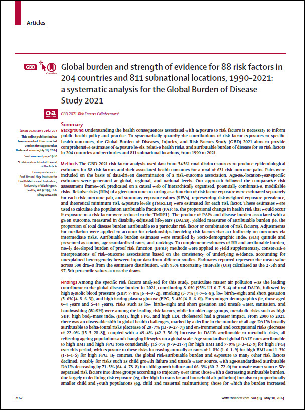 Global burden and strength of evidence for 88 risk factors in204 countries and 811 subnational locations, 1990–2021 : a systematic analysis for the Global Burden of Disease Study 2021 Lancet May 18, 2024 GBD 2021 Risk Factors Collaborators. Global burden and strength of evidence for 88 risk factors in 204 countries and 811 subnational locations, […]
