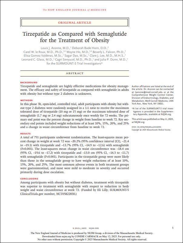 Journal Article – Tirzepatide Versus Semaglutide for Obesity Treatment