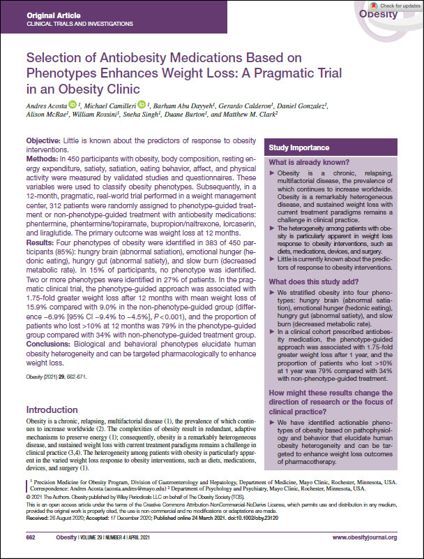 Journal Article – Phenotype-Guided Antiobesity Medication Selection Enhances Weight Loss